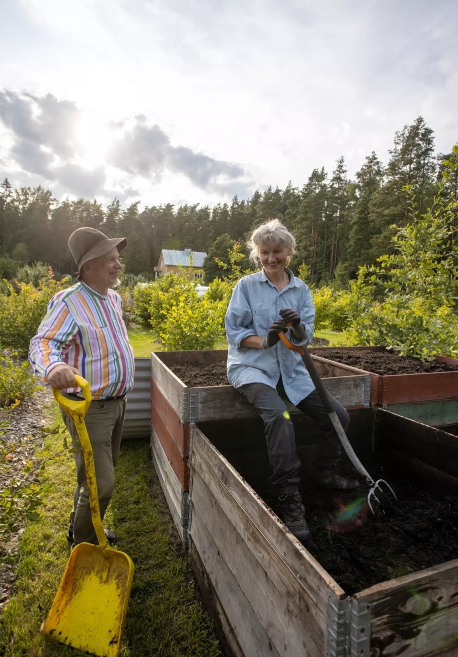 At Tallbacka Garden, the wellbeing of the soil is the foundation of everything we do. We do not dig or till the soil; instead, we leave the work of maintaining soil structure to the microorganisms living in it. We want to support the symbiosis between fungal mycelium and plants. We care for our growing beds by spreading a 5–8 cm layer of our own homemade compost on them once a year. On the paths between the beds, we prefer using wood chips. We do not use artificial fertilizers or pesticides.